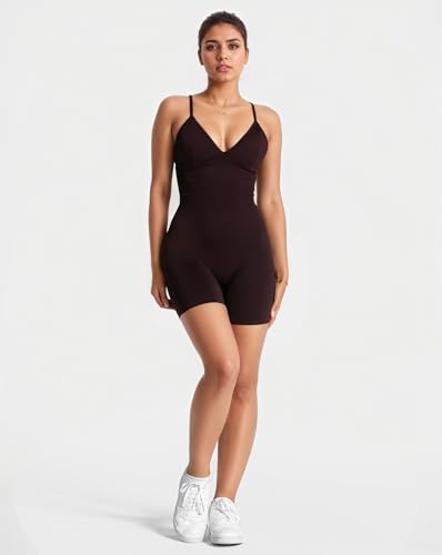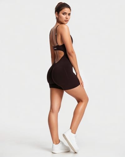 TAYOEA One Piece Jumpsuits for Women Workout Backless Jumpsuit Seamless Tummy Control Sleeveless Short Yoga Rompers