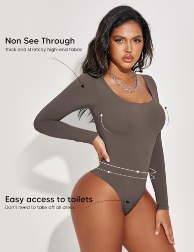 Tummy Control Thong Bodysuit for Women Long Sleeve Double Line Slimming Going Out Tops Body Suits