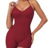 7Wins JJJ Women Catsuit Cotton Tank Spaghetti Strapped Short Yoga Bodysuit Jumpsuit