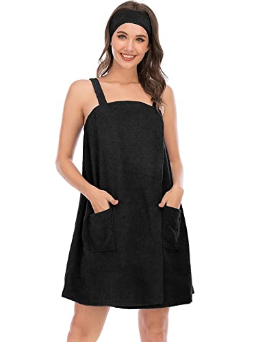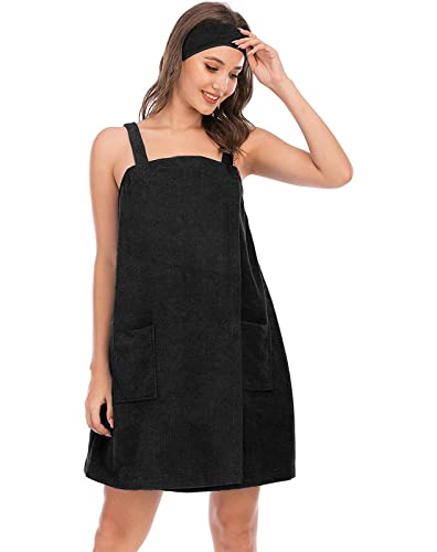 Vanrose Jan Womens Bath Wrap Towels with Straps Pocket Spa Towel Bathrobe & Hair Headband