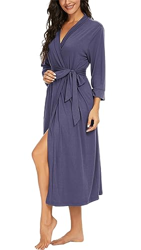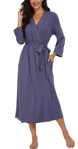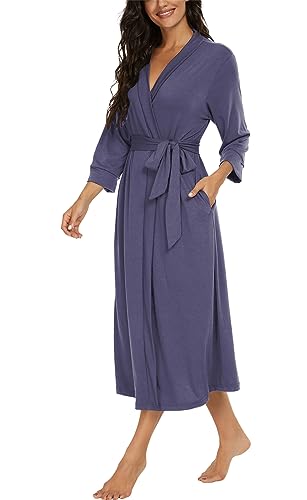VINTATRE Women Kimono Robes Long Knit Bathrobe Lightweight Soft Knit Sleepwear V-neck Casual Ladies Loungewear