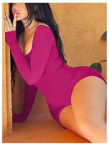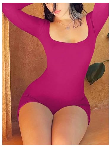 WDIRARA Women’s Long Sleeve Bodysuit Shorts Square Neck Bodycon Romper One Piece Outfits