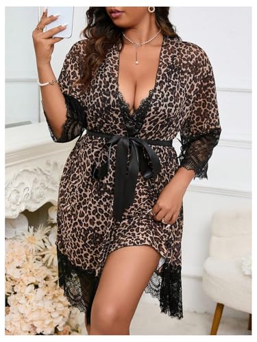 WDIRARA Women’s Sexy Lace Cami Sleepwear Slip Satin Nightgown with Robes Set 2 Piece Spaghetti Strap Nightwear