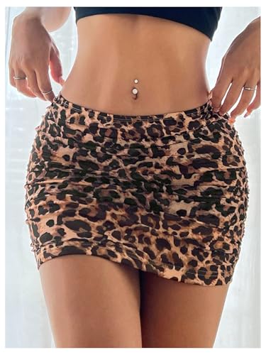 WDIRARA Women’s Sexy Leopard Print Ruched Mini Skirt Mesh Bodycon High Waisted Skirts