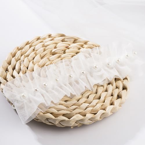 White Wedding Garters for Bride Lace Satin Bride Wedding Garters Pearl Thigh Leg Garter Set Handmade Stretch Toss Bridal Accessories for Engagement Date Anniversary Party