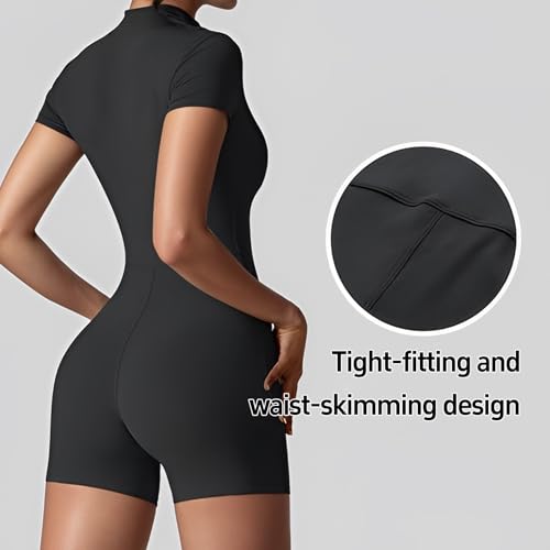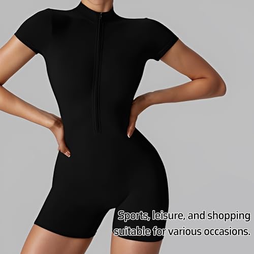 Women Bodysuit Zip Tummy Control Yoga Workout Work Out Gym Set for Athletic Rompers Romper Leotards One Piece Outfit Sexy