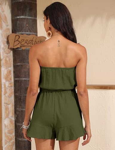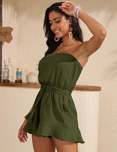 Women Cute Summer Rompers Dress Boho Short Jumpsuits Strapless Beach Vacation Outfits Resort Wear