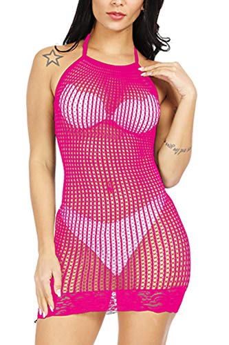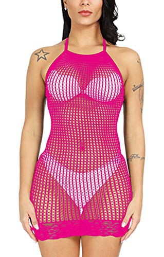 Women Halter Fishnet Babydoll Lingerie Chemise Nightwear Mini Teddy Dress One Size One Piece