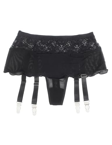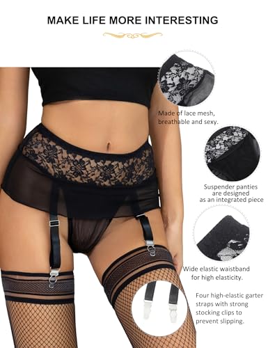 Women Lace Garter Belt Sexy Floral Mesh Suspender with 4 Vintage Metal Clips for Women Stocking (No Stockings)