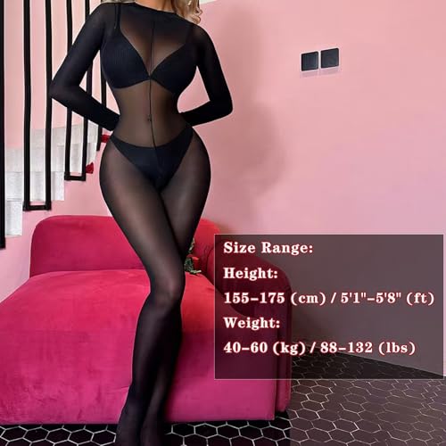 Women Long Sleeve Full Body Stockings Elastic Sexy Bodystocking Nylon One Piece Bodysuit
