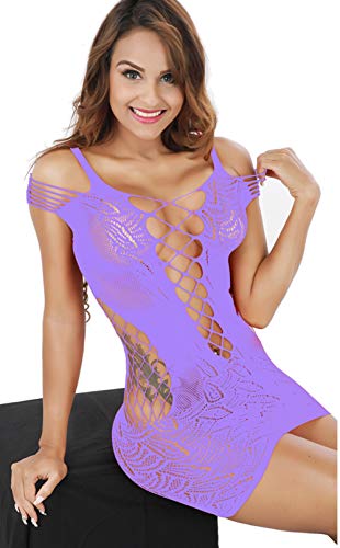 Women Sexy Flexible Fishnet Lingerie V-Neck Babydoll Mesh Teddy Bodysuit Mini Dress One Size