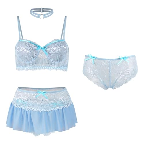 Women Sexy Lingerie Set Naughty 3 Piece Bralette, Mini Skirt with G-String Push UP Bra and Panty Dress Lingerie Outfits