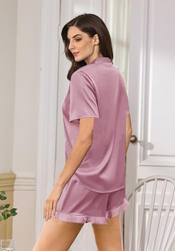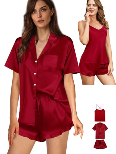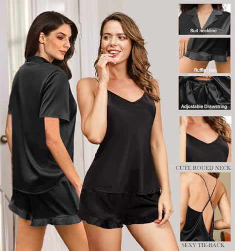 Womens 3Pcs Satin Pajamas Set Ruffle Silk Pajama Sets XS-4XL Sexy Camisole Silky Sleepwear Loungewear Pj Sets