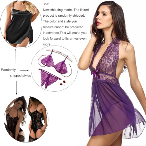 Women’s Lace Kimono Robe Babydoll Lingerie Mesh Nightgown Fishnet Thigh High Stocking Silicone Lace Top Sheer Silver