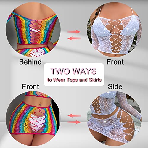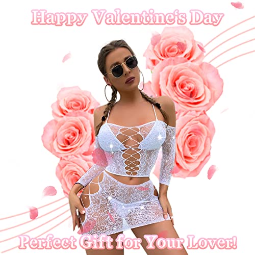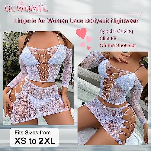 Womens Lingerie Set Naughty Lace Fishnet BabyDoll Bodysuit Nightwear Teddy 2 Piece Suits