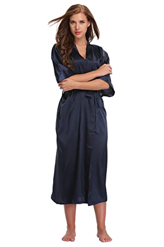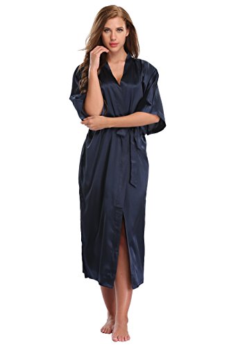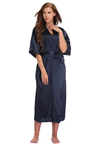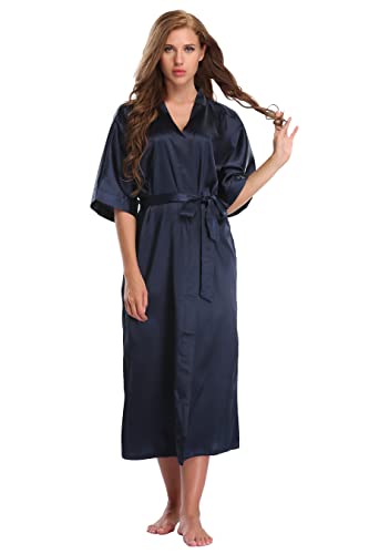 Women’s Long Silky Robes Bridesmaid Bride Wedding Bridal Party Robe Satin Kimono Bathrobes Soft Sexy Summer Loungewear