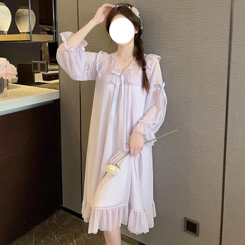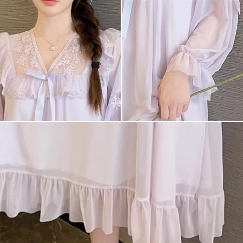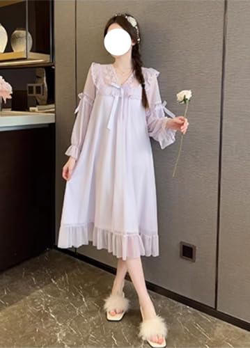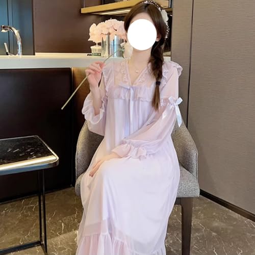 Women’s Long Sleeve Victorian Nightgowns Sweet Bow Lace Trim Soft Sleepwear ruffle Princess Nightdress Loungewear