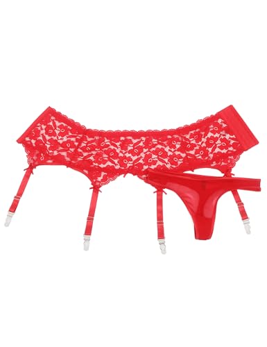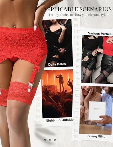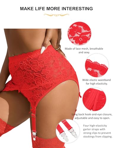 Women’s Plus Size Garter Belt for Thigh Highs High Waisted Garter Belt Sexy Lace Suspender Set with 4 Wide Strap