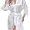 Women’s Plus Size Satin Kimono Robes Short Silky Bathrobe Wedding Getting Ready Sleepwear Loungewear