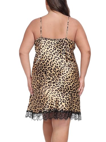 Women’s Plus Size Satin Slip Nightgown Lace Chemise Lingeries Sexy Slit Negligees Sleepwear Bridal Lingerie