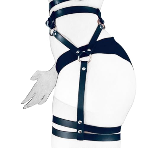 Women’s Punk Leather Harness Waist Leg Cage Beds Tableware Gothic Garter Belt Ladies Bondage Harness Sexy Waist Rings Suspenders Belt Thigh Chain BDSM Bondage