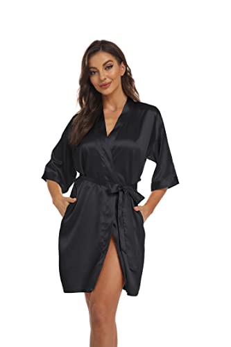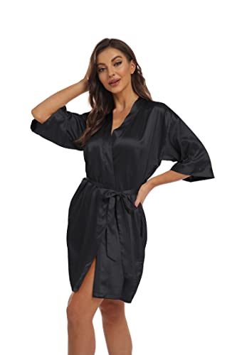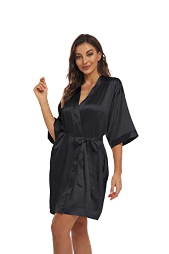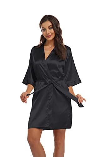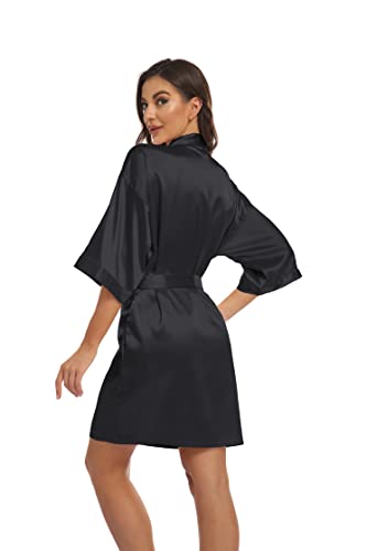 Women’s Pure Short Kimono Robes Bride Bridesmaids Silky Bathrobe Lightweight Satin Sleepwear