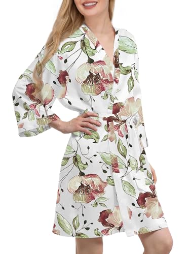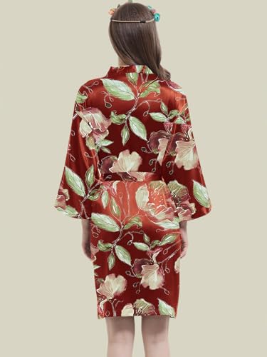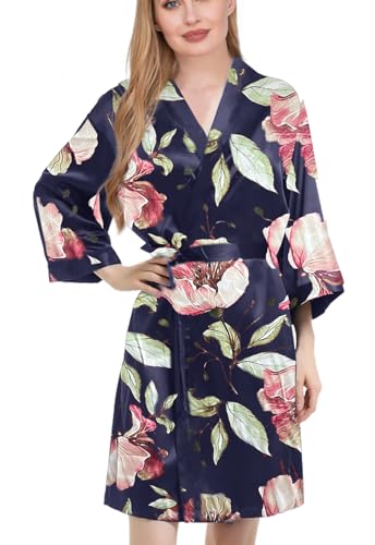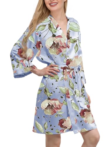 Womens Satin Kimono Robe Silk Robes Floral Bathrobe Bride Bridesmaid Wedding Silky Bridal Dressing Gown Loungewear