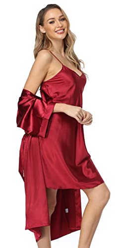Women’s Satin Robes Set with Nightgown Silk Kimono Pajamas 2 Piece Sleepwear Camisole Wedding Bride Gown Set