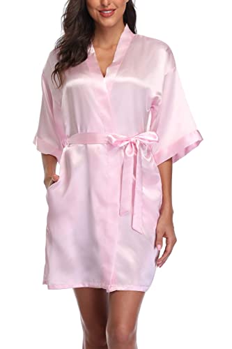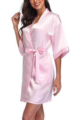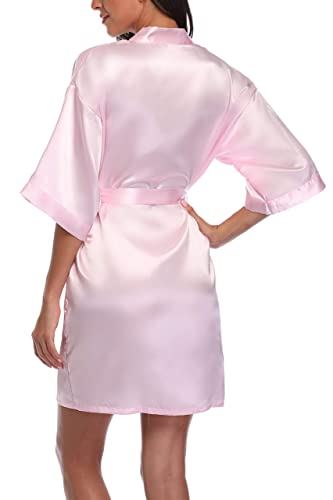 Women’s Satin Robes Short Bridesmaid Getting Ready Robe Soft Sleepwear Kimono Bathrobe for Bridal Wedding Party