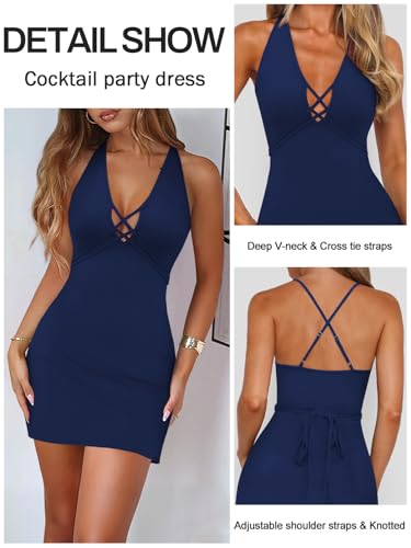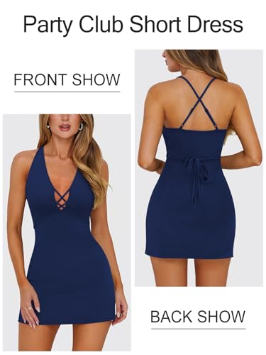 Women’s Sexy Halter V Neck Cross Tie Spaghetti Strap Mini Dresses for Women Summer Party Cocktail Going Out Dress