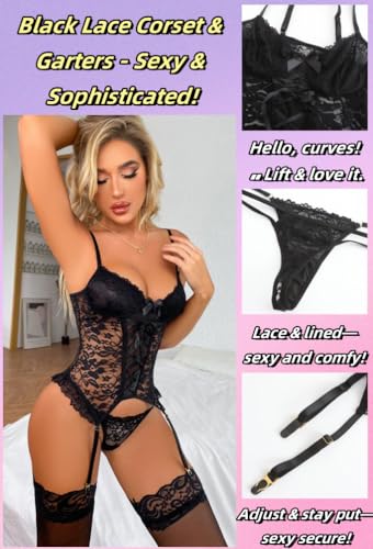 Avidlove Women Lingerie Set High Waisted Underwire Lingerie With Garter Belt Lace Babydoll