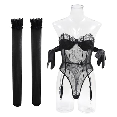 πππ-Garter Lingerie Set for Women Thigh High Stockings Sexy Floral Lace Eyelash Sheer Babydoll Outfit Naughty Sleepwear Nighties are made of breathable and comfortable fabrics.