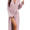 Ekouaer Women’s Silk Robe Set V-neck 2 Piece Bridal Party Robes and Satin Bathrobe Set with Pockets