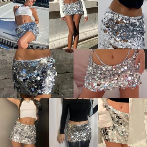 Women’s Sexy Shiny Sequin Mini Skirt Glitter Low Waist Pencil Skirts Bodycon Dance Party Club Short Skirt