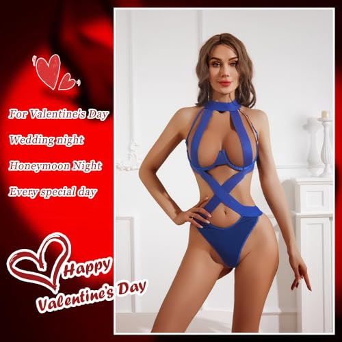 Women’s Sexy Strappy Bodysuit – Cutout Halter One-Piece with Adjustable Crisscross Design, Nightwear, Clubwear