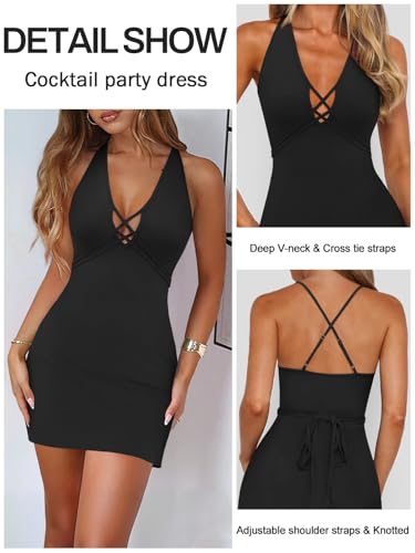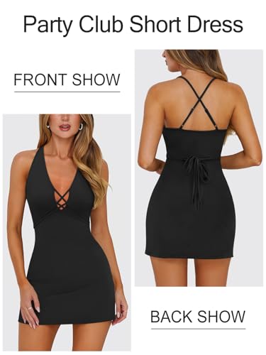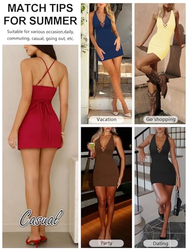 Women’s Tie Spaghetti Strap Mini Dresses Sexy Halter V Neck Cross for Women Summer Party Cocktail Going Out Dress