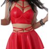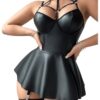 Women’s wet look lingerie set with shiny diamond mesh tight chain backless leather bodysuit