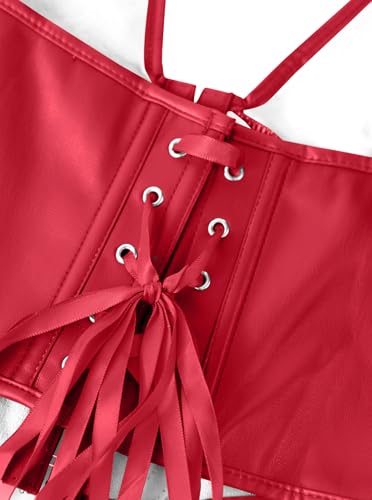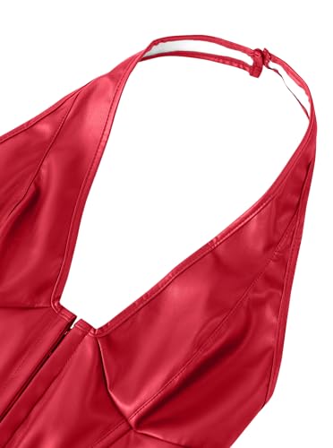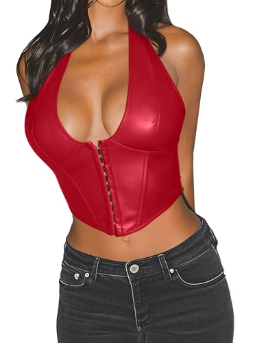 Women’s Y2K Leather Halter Top Backless Corset Bustier Top Lace Up Sexy Going Out Crop Tank Halter Neck Party Club