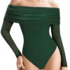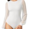 Zando Women’s Bodysuit Mock Neck Long Sleeve Tummy Control Fitted Basic Top