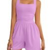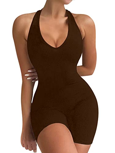 7Wins JJJ Women Catsuit Cotton Tank Spaghetti Strapped Short Yoga Bodysuit Jumpsuit